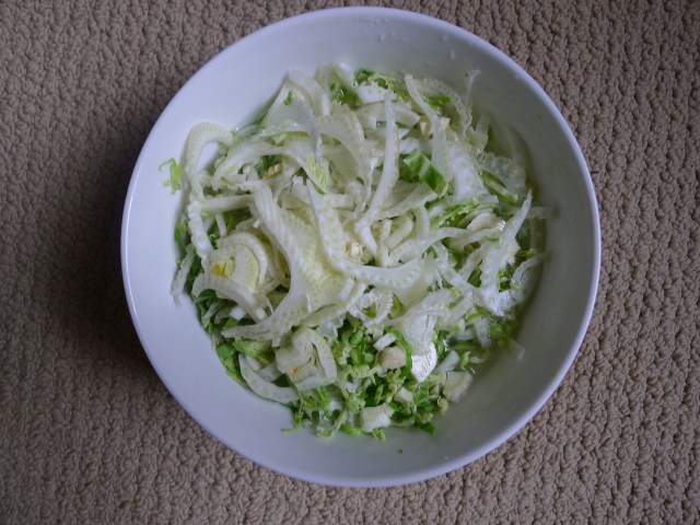 7) To make the slaw, trim the roots from the sprouts and the fennel and shave on a mandolin, or use a sharp knife.