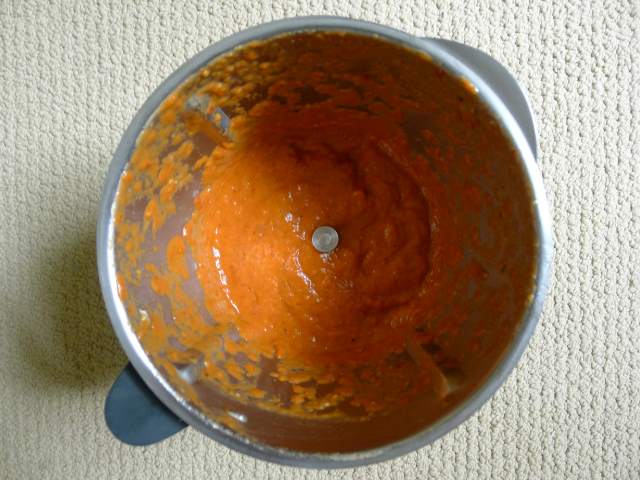 5) Put the drumsticks aside to rest. Take the roasted vegetables and transfer to a food processor or blender.