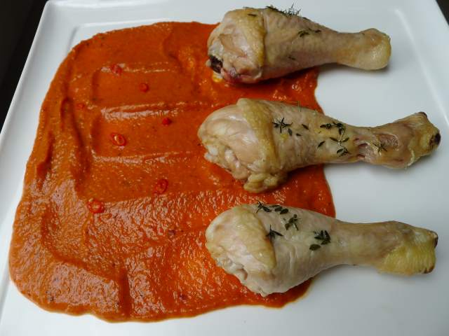 How far is too far to be pushed towards greatness? It’s a question that will plague you after viewing the torment that Terence Fletcher (J.K Simmons) throws at aspiring jazz percussionist Andrew Neimann (Miles Teller) in Whiplash. You may also not have the stomach for the sight of more blood red taint on drumsticks, but if you do, might I suggest this dish? Here the blistering comes not from hours of traumatised practice in a soundproof room, but the searing burn of the oven and grill on vulnerable peppers and tomatoes. Depending on your appetite for salty language and hot tempers, you can adjust the seasoning and chilli level in the sauce to something you’re comfortable with. Once you’ve finished pulling all the meat from the drumsticks it’s up to you whether you want to cast them aside, get a girlfriend and make some friends, or get back to work mastering your double time swing.