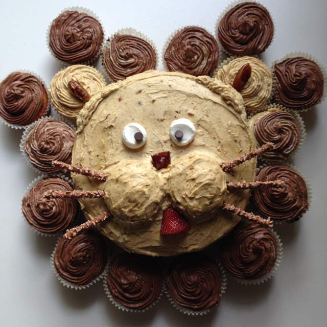 This lion cake and these accompanying coconut flour cupcakes are the answer.
