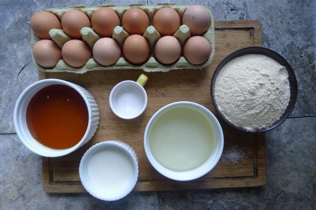 2) Whisk together the eggs, honey (or rice malt syrup), coconut milk and vanilla.