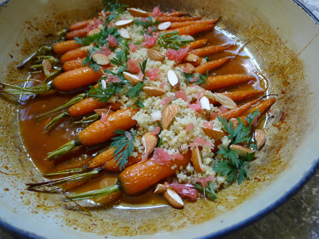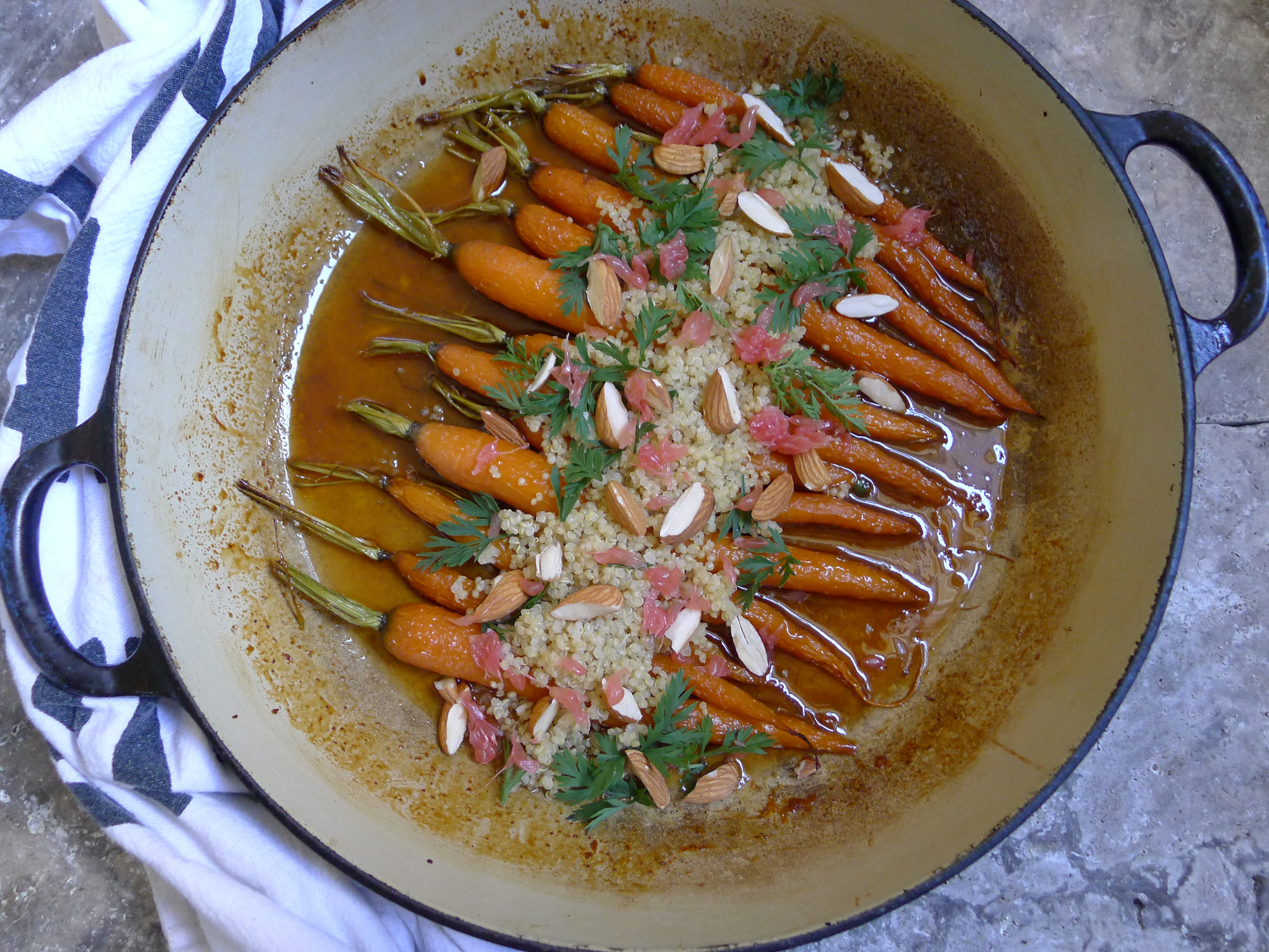 Grapefruit Glazed Roasted Roots with Quinoa and Almonds