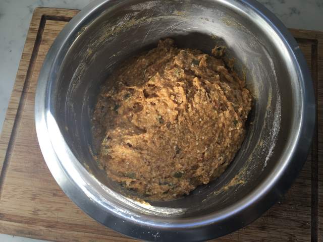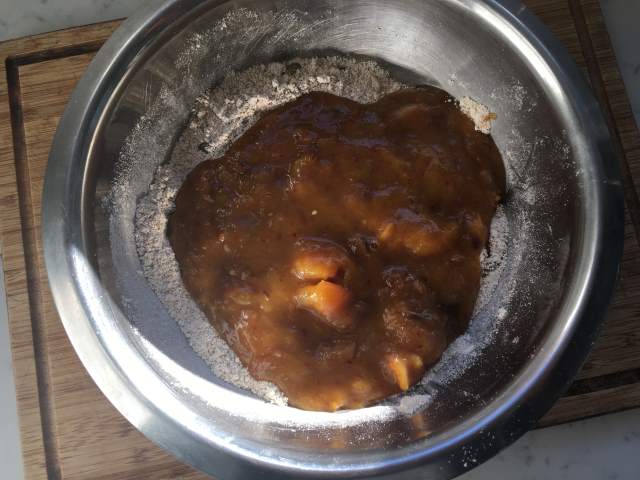 4) Allow the jammy mix to come to room temperature and then fold in the egg (or egg replacement).