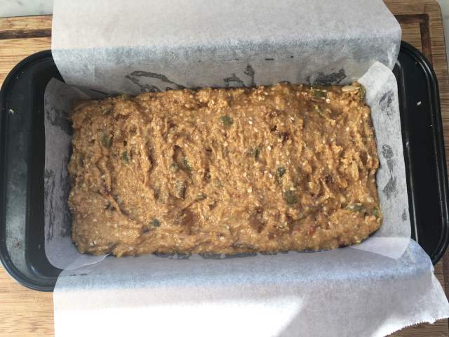 1) Preheat the oven to 180C/350 F and grease and line a 20 cm x 12.5 cm loaf tin.