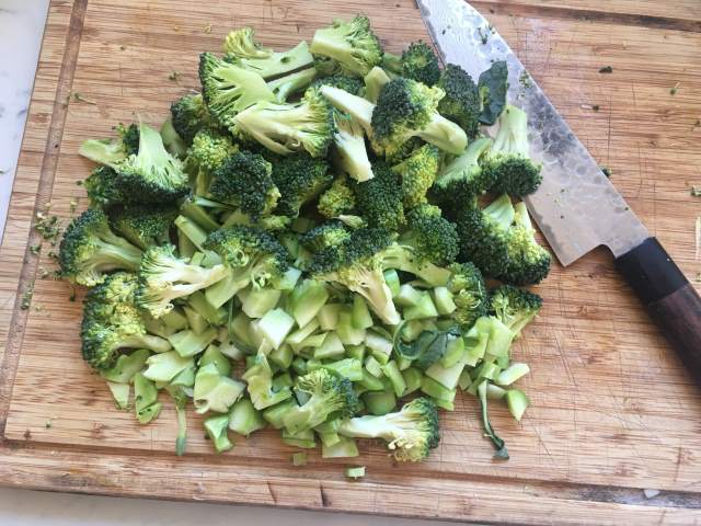 img_81683) Dice the broccoli into florets and the stem into 1 cm pieces.
