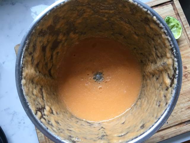 1 Place the rockmelon flesh, lime juice and sweetener in a strong blender or food processor.