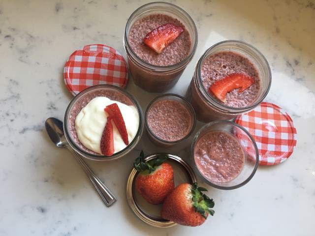 4) Portion into jars, glasses or pots and place in the fridge to firm up and set for four hours (or overnight).